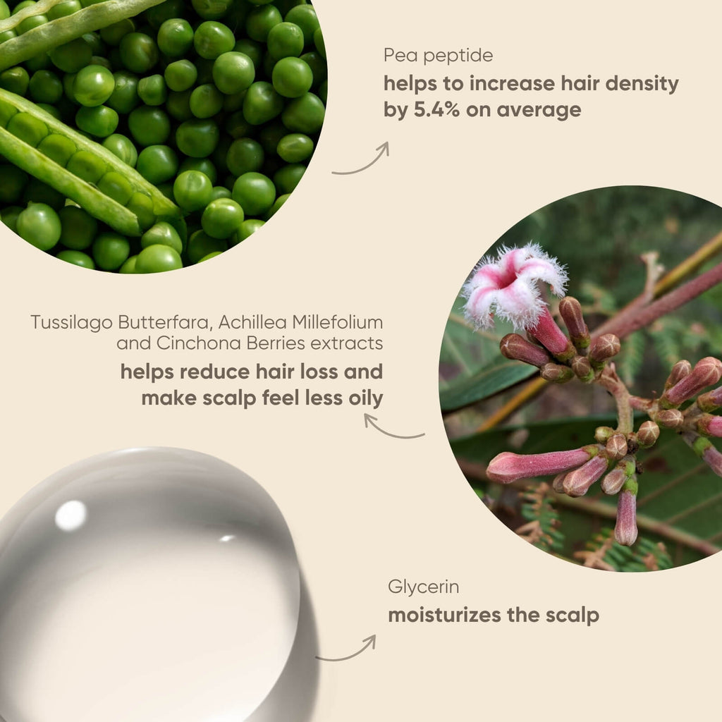 Achieve your haircare goals with this overnight scalp serum supercharged with Pea peptide and a hard-working botanical blend of Tussilago Butterfara, Achillea Millefolium and Cinchona Berries that make your hair look.